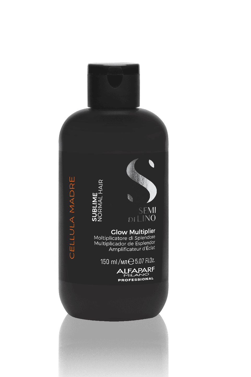 Cellula Madre Glow Multiplier, which should be combined exclusively with Semi Di Lino Cellula Madre Beauty Genesis, intensifies shine without weighing hair down.